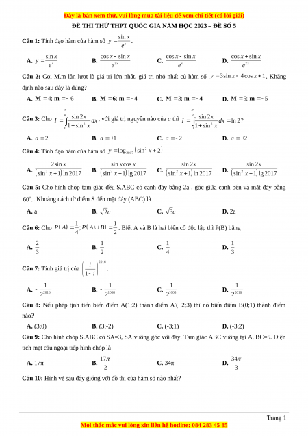 ĐỀ THI THỬ THPT QUỐC GIA NĂM HỌC 2023 – ĐỀ SỐ 5