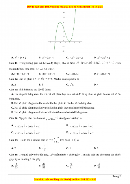 Câu 14: Nguyên hàm của hàm số trên tập các số thực là