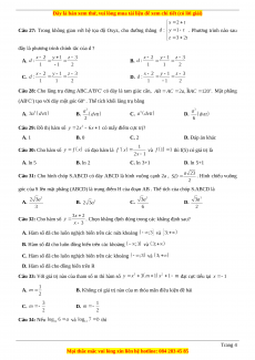 góc của S lên mặt phẳng (ABCD) là trung điểm H của đoạn AB . Thể tích của chóp S.ABCD là A. B. C. D. Câu 32: Cho hàm số