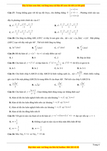 Đây là bản xem thử, vui lòng mua tài liệu để xem chi tiết (có lời giải)