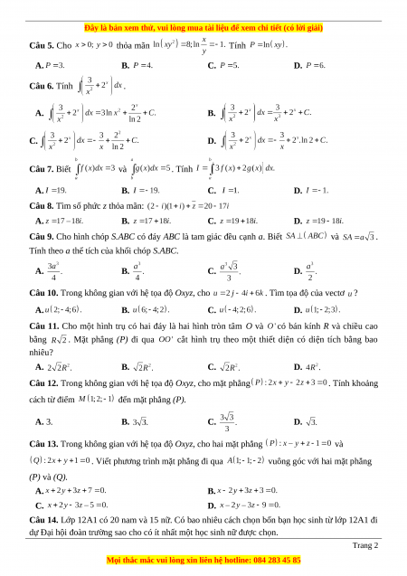 Câu 5. Cho thỏa mãn Tính A. B. C. D. Câu 6. Tính . A. B. C. D. Câu 7. Biết và . Tính A. B. C. D.