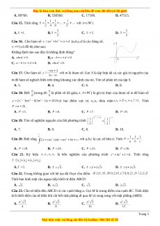 A. 89760. B. 538560. C. 17100. D. 47515. Câu 15. Tính tổng với A. B. C. D. Câu 16. Cho hàm số