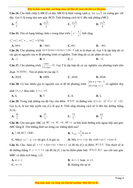 D. Không tồn tại m. Trang 4