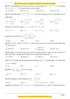 Câu 11. Trong không gian với hệ trục tọa độ Oxyz, cho mặt phẳng và mặt phẳng