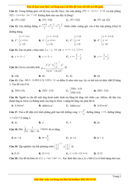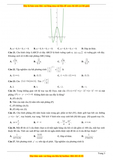 , tiếp tuyến của đồ thị có hệ số góc là A. B. C. D. Câu 4. bằng A. B. C. D.