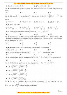 Câu 40. Biết hàm số có đạo hàm liên tục trên và Tính A. B. C. D. Câu 41. Nếu thì A. B. C. D.