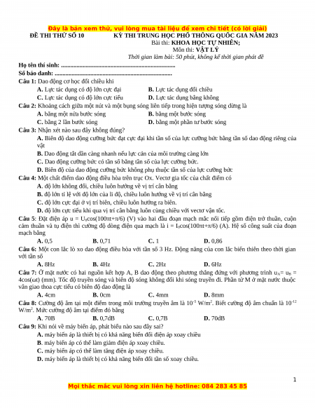 ĐỀ THI THỬ SỐ 10