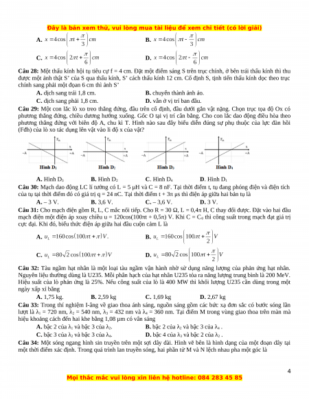 Bài thi: KHOA HỌC TỰ NHIÊN; Môn thi: VẬT LÝ