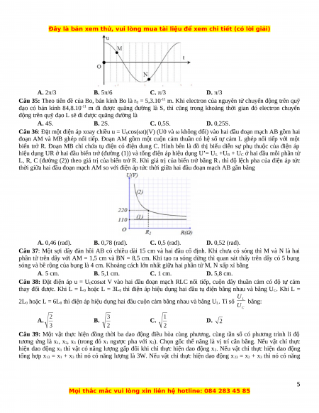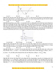 Câu 5: Đặt điện áp u = U0cos(100πt+π/6) (V) vào hai đầu đoạn mạch mắc nối tiếp gồm điện trở thuần, cuộn