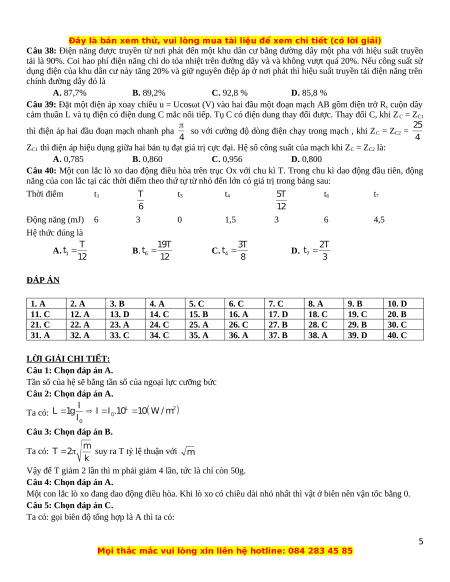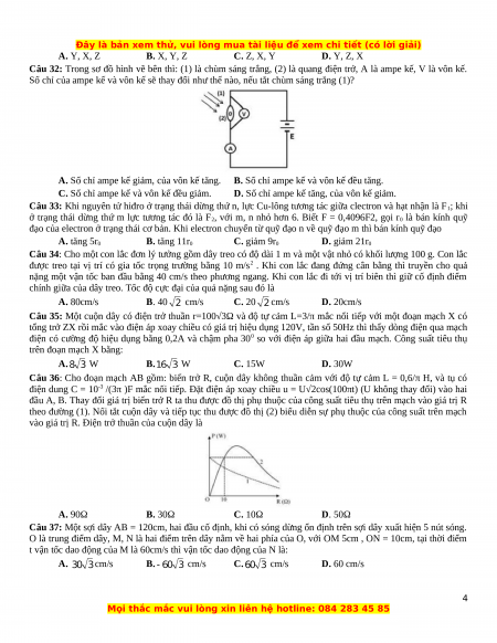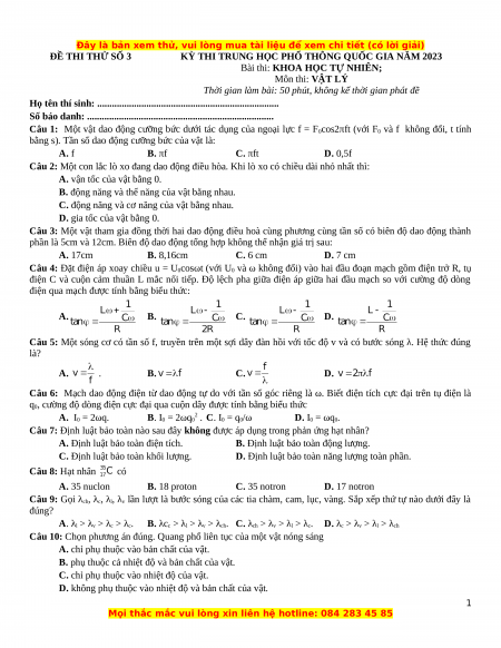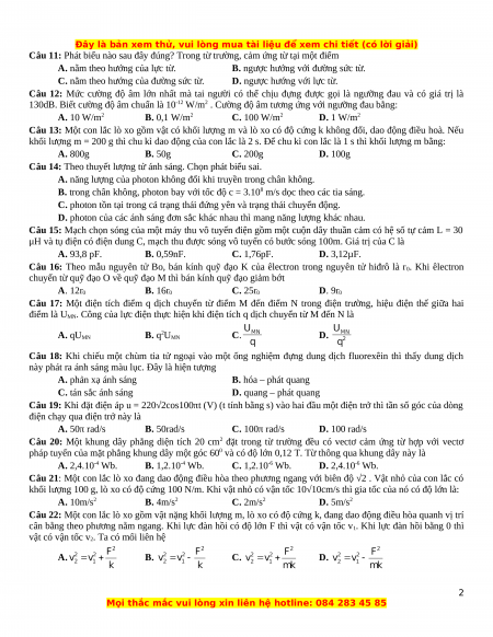 Bài thi: KHOA HỌC TỰ NHIÊN; Môn thi: VẬT LÝ