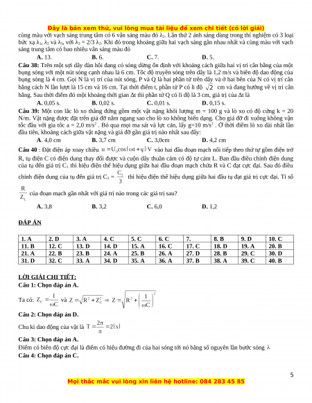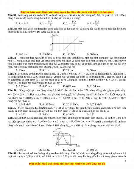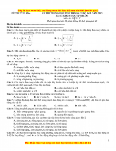Bài thi: KHOA HỌC TỰ NHIÊN; Môn thi: VẬT LÝ