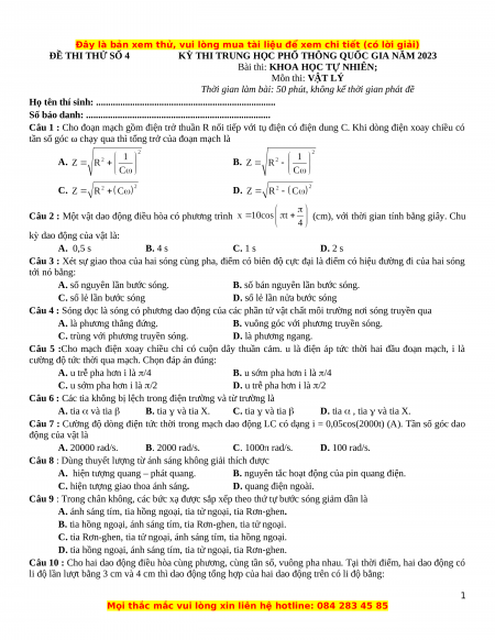 ĐỀ THI THỬ SỐ 4