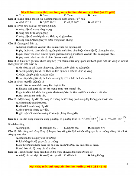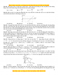 Câu 22 : Sóng ngang có tần số f = 56Hz truyền từ đầu dây A của một sợi dây đàn hồi rất dài. Phần tử dây tại