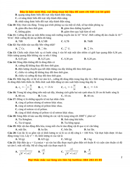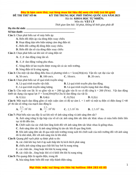 Bài thi: KHOA HỌC TỰ NHIÊN; Môn thi: VẬT LÝ