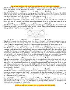 Câu 16: Trong hệ sóng dừng trên một sợi dây, khoảng cách giữa hai nút cạnh nhau là 20 cm thì bước sóng là A. 80 cm. B. 5 cm. C. 10 cm. D. 40 cm.