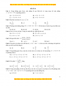 Câu 1: Trong không gian Oxyz, mặt phẳng đi qua M(1;2;3) và song song với mặt phẳng