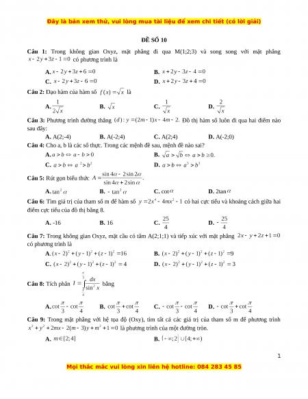 Đây là bản xem thử, vui lòng mua tài liệu để xem chi tiết (có lời giải)