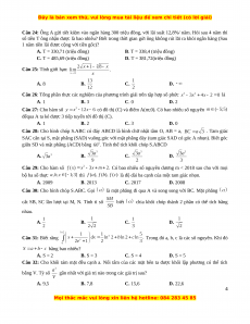 Tính thể tích khối chóp S.ABCD A. B. C. D. Câu 29: Cho hàm số