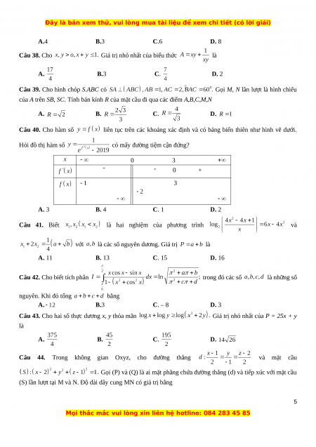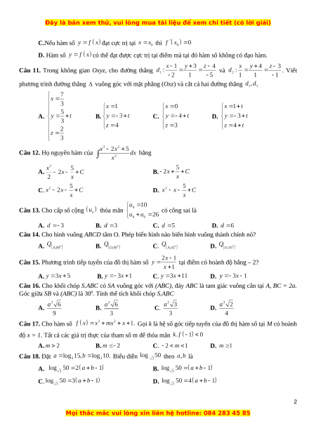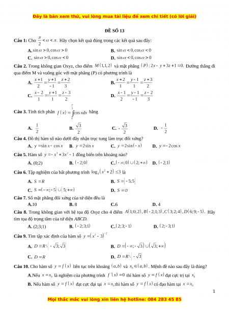 Đây là bản xem thử, vui lòng mua tài liệu để xem chi tiết (có lời giải)