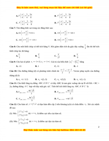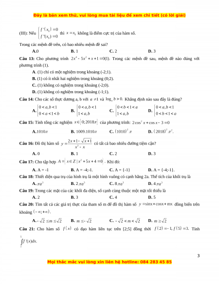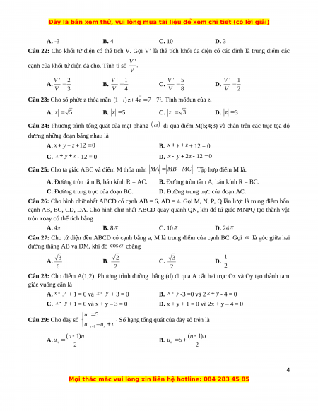 Đây là bản xem thử, vui lòng mua tài liệu để xem chi tiết (có lời giải)