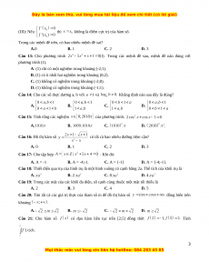 Câu 3: Mặt phẳng có phương trình nào sau đây song song với trục Ox? A. B. C. D.