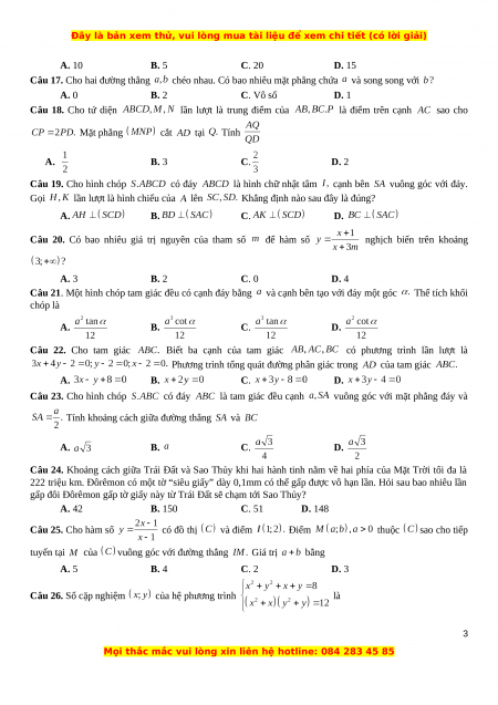 Đây là bản xem thử, vui lòng mua tài liệu để xem chi tiết (có lời giải)