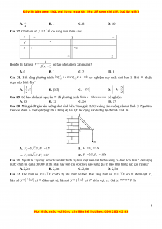 nước chứa tối đa là 30.000 lít thì phải xây bồn cầu có chiều cao bằng giá trị nào nhất trong các giá trị sau? A. 2,2m B. 2,3m C. 2,4m D. 2,5m Câu 32. Cho hàm số