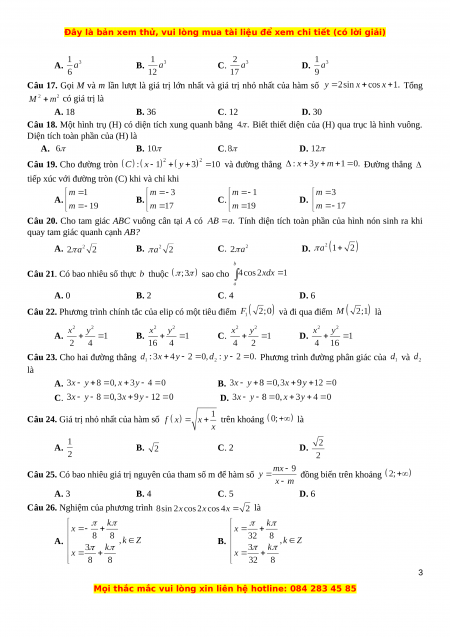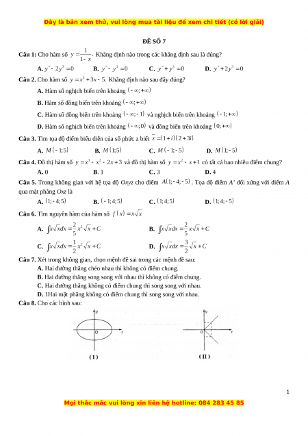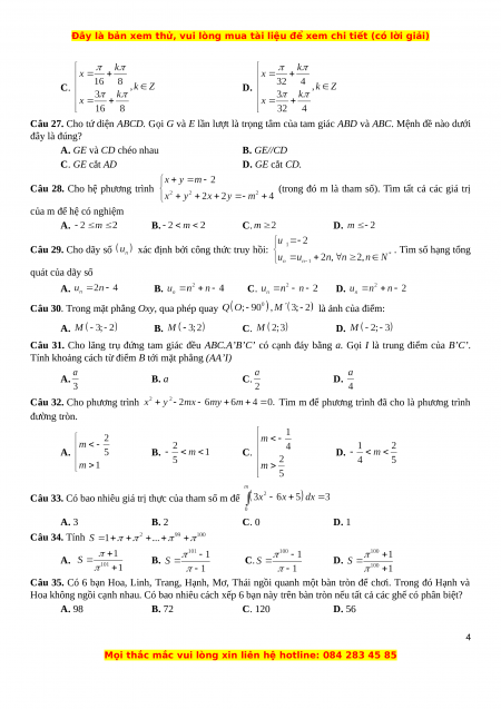 Đây là bản xem thử, vui lòng mua tài liệu để xem chi tiết (có lời giải)