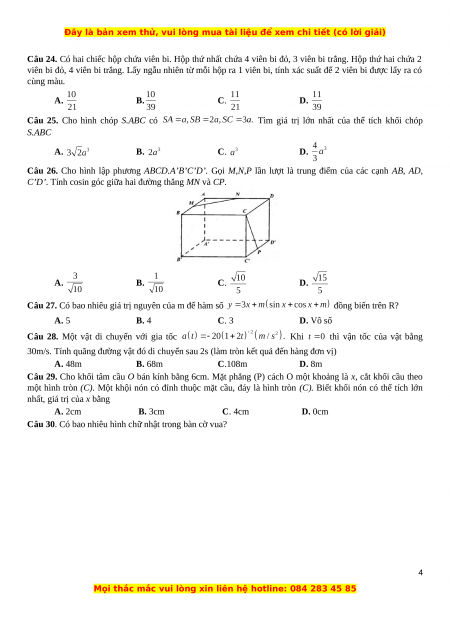 Đây là bản xem thử, vui lòng mua tài liệu để xem chi tiết (có lời giải)