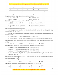 Câu 10: Tìm nguyên hàm của hàm số A. B. C. D.