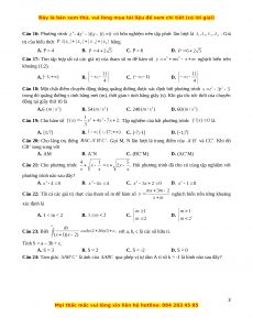 Câu 2: Trong không gian Oxyz, đường thẳng đi qua điểm A(1;2;3) và vuông góc với mặt phẳng