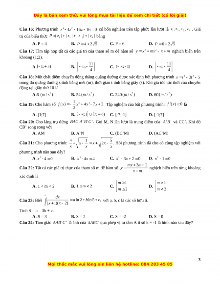 Câu 16: Phương trình có bốn nghiệm trên tập phức lần lượt là . Giá