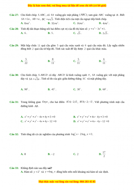 Đây là bản xem thử, vui lòng mua tài liệu để xem chi tiết (có lời giải)