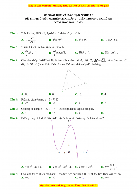 ĐỀ THI THỬ TỐT NGHIỆP THPT LẦN 2 - LIÊN TRƯỜNG NGHỆ AN
