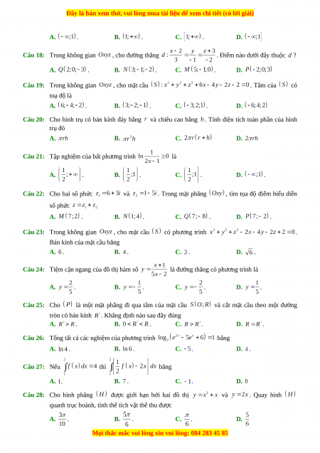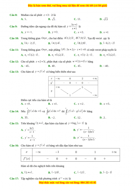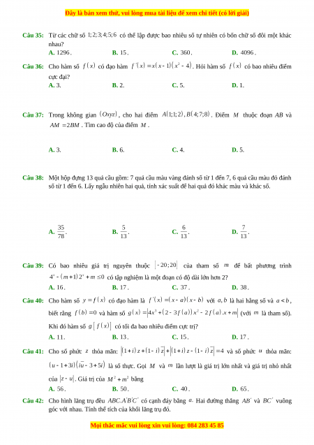 Đây là bản xem thử, vui lòng mua tài liệu để xem chi tiết (có lời giải)