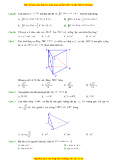 Câu 34: Họ tất cả các nguyên hàm của hàm số là