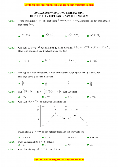 Đề thi thử Toán Sở Bắc Ninh năm 2023