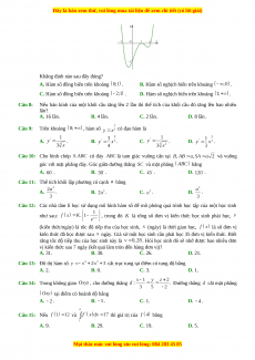 D. Hàm số nghịch biến trên khoảng . Câu 8: