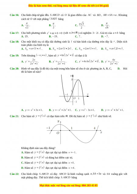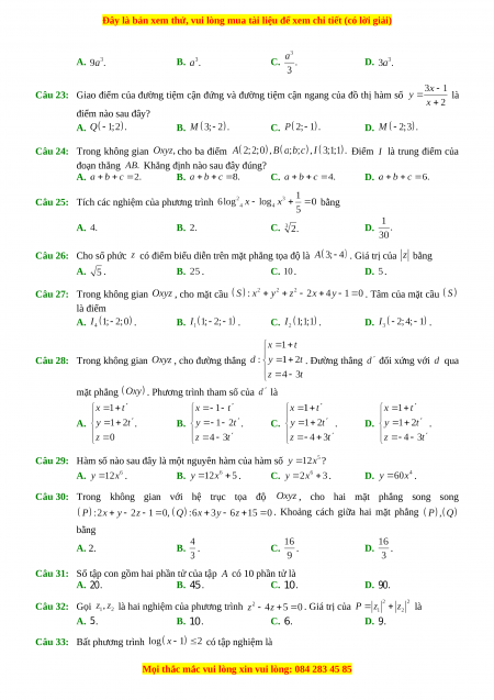 Đây là bản xem thử, vui lòng mua tài liệu để xem chi tiết (có lời giải)
