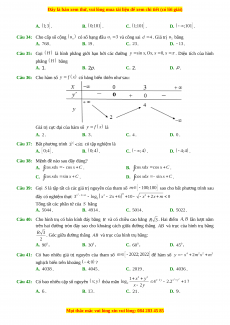 suất chọn được bi cùng màu bằng A. . B. . C. . D. . Câu 4: Nếu thì bằng bao nhiêu? A. . B. . C. . D. . Câu 5: Cho hàm số