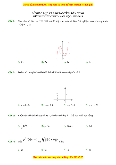 Đề thi thử Toán Sở Đắc Nông năm 2023