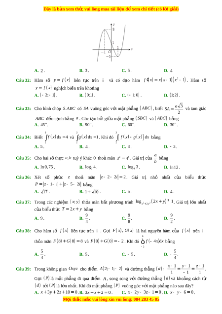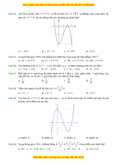 ể M là nằm ngoài mặt cầu ( S) . Câu 13: Đ t ồ hị c a ủ hàm số nào dư i ớ đây có dạng nh đ ư ư ng c ờ ong trong hình v s ẽ au đây A. 3