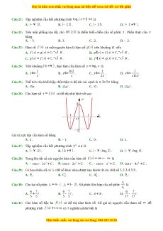 Đây là bản xem th , vu ử i lòng mua tài li u ệ đ xe ể m chi ti t ế (có l i ờ gi i ả ) Câu 21: Tập nghi m ệ c a ủ bất phư ng ơ trình log x 1 + 1 < 2 ( ) là A. ( - ¥ ; ) 1 . B. (- 1;2) . C. (- 1; ) 1 . D. ( - 1;+¥ ) .