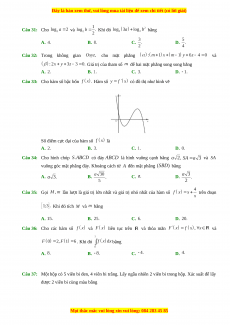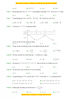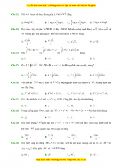 vuông góc mặt phẳng đáy. Thể tích khối chóp bằng A. . B. . C. . D. . Câu 24: Nếu và thì bằng A. . B. . C. . D. . Câu 25: Cho . Nếu đặt
