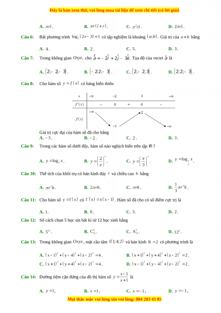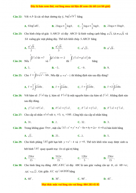 Đây là bản xem thử, vui lòng mua tài liệu để xem chi tiết (có lời giải)