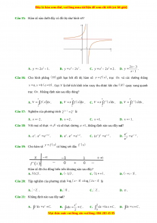 Câu 15: Hàm số nào dưới đây có đồ thị như hình vẽ?