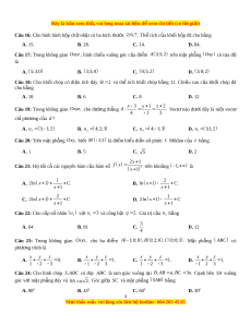 Câu 28: Trong không gian Oxyz, cho các đi m