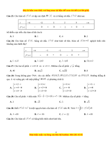 Tính I 2 f x dx 1 A. I 2 0 B. I 26 C. I 22 D. I 2 8 Câu 31: Cho hàm s