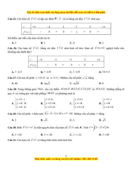 Đây là bản xem th , vu ử i lòng mua tài li u ệ đ xe ể m chi ti t ế (có l i ờ gi i ả ) Câu 25: Cho hàm s