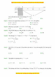 Câu 20: Trên khoảng hàm số có đạo hàm là A. B. C. D. Câu 21: Lớp 12A1 có